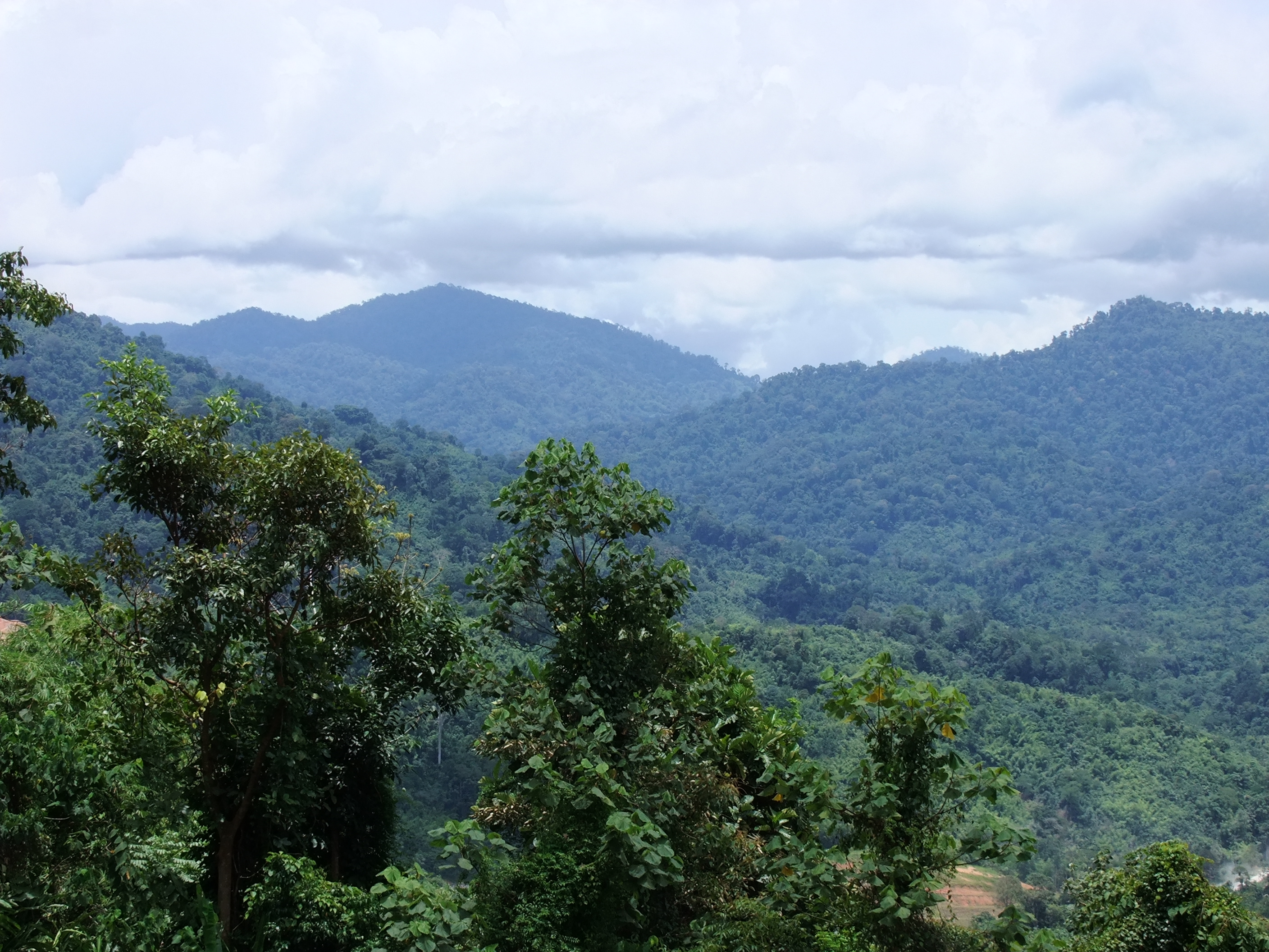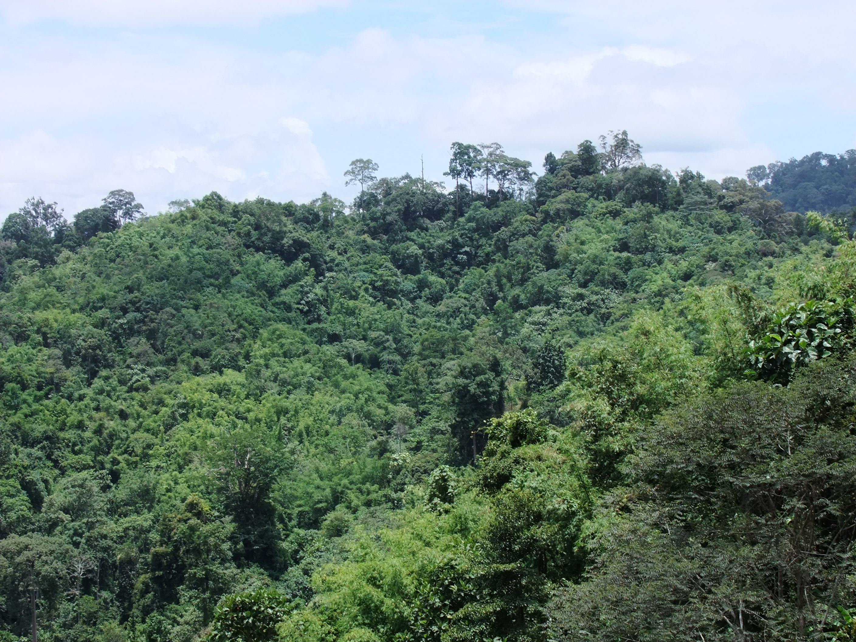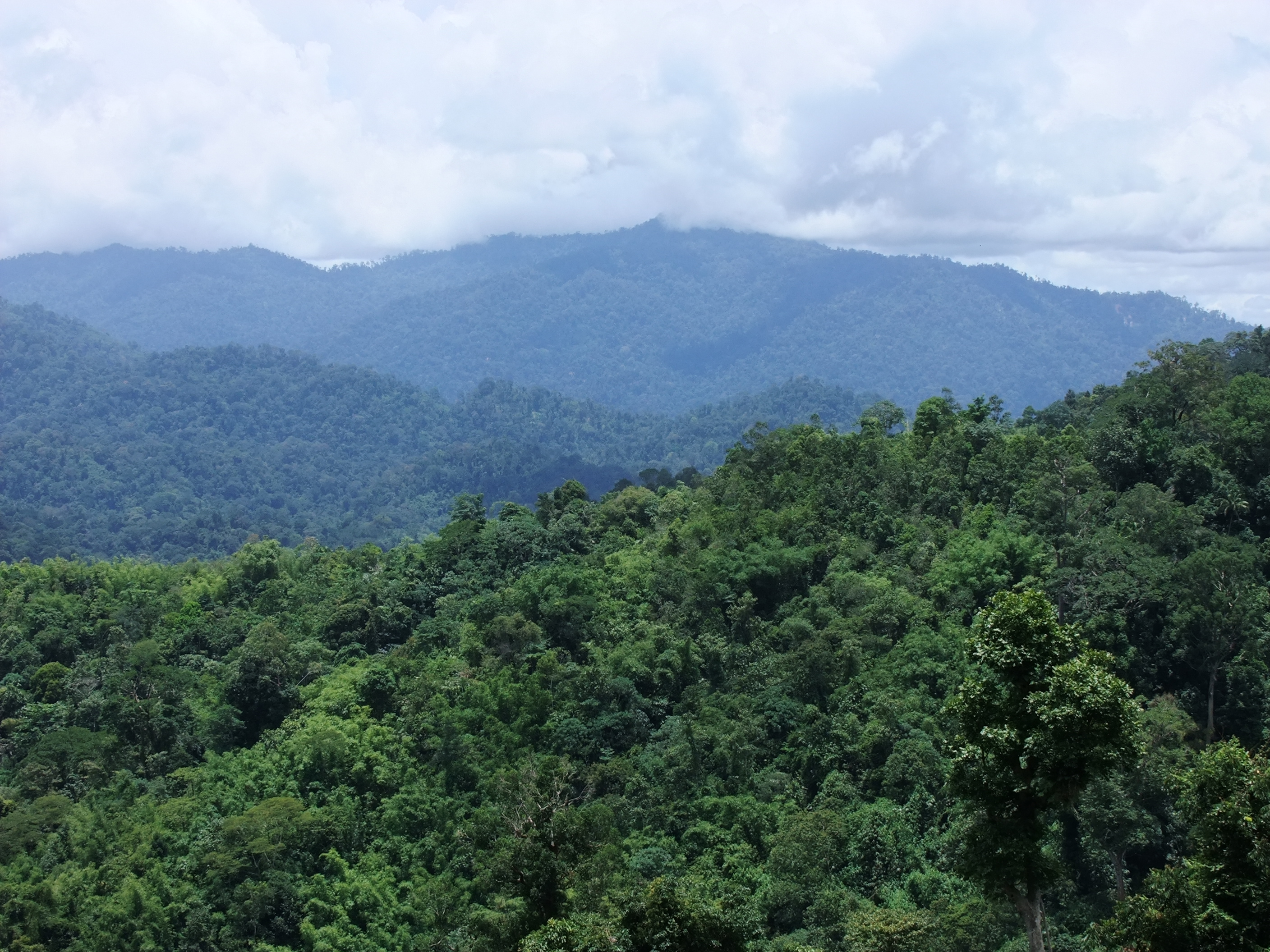 Ich muss zunächst über 50 Kilometer zurück nach Jerantut fahren. Von dort aus lotst mich das Navigationsgerät über mehrere Nebenstraßen wohl etwa 60 Kilometer weit nach Kuala Lipis. Nun wird die Strecke immer hügeliger. Bald schon fahre ich über Passstraßen durch eine schöne, grüne Berglandschaft. Das Selbstfahren hat den Nachteil, dass man wegen des Verkehrs wesentlich weniger die Landschaft genießen kann, als wenn man gefahren wird. Anhalten kann man nicht so ohne Weiteres. Es gibt keine Parkplätze oder größere Ausbuchtungen. Auf einem leeren Teilstück kann ich allerdings doch einmal kurz auf dem Seitenstreifen anhalten und einige Fotos machen. In dieser Zeit kommt tatsächlich kein einziges Fahrzeug vorbei. Bald finde ich eine Tankstelle, tanke voll und pumpe etwas Luft in den hinteren rechten Reifen, der so aussieht, als hätte er das nötig. Der Liter Benzin (95 Oktan) kostet 2,70 Ringgit, also nicht einmal 65 Eurocent.