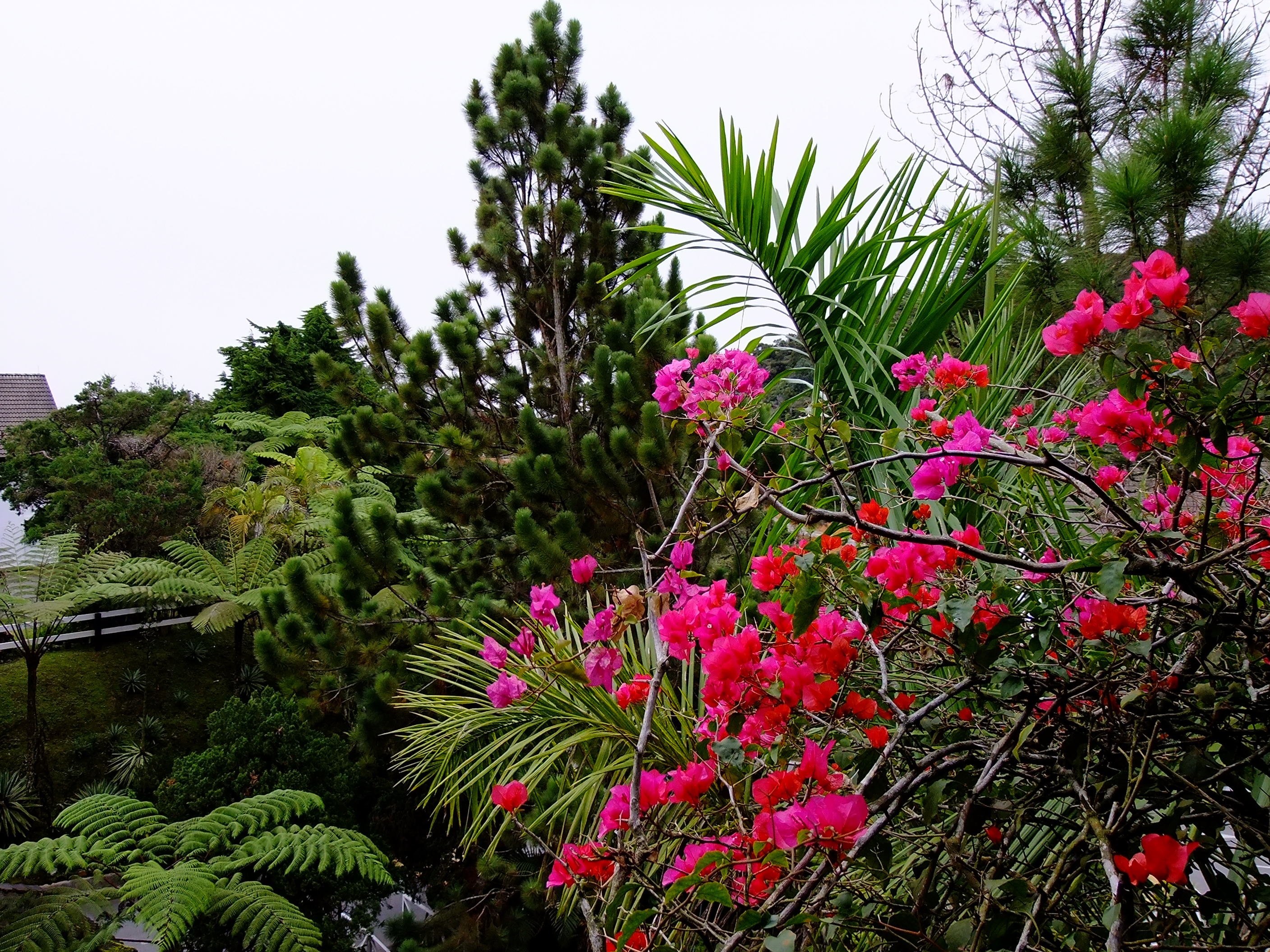 Die Straße wird immer steiler und kurvenreicher. Gleichzeitig wird, wie das in höheren Lagen ja leider oft so ist, das Wetter immer schlechter. Kam vorher zeitweise die Sonne durch, beginnt es nun immer wieder leicht zu regnen. Inzwischen fahre ich an unzähligen Gewächshäusern vorbei. Hier werden zumeist Erdbeeren gepflanzt. Viele Schilder laden dazu ein, die Farmen zu besuchen, und selbst Erdbeeren zu pflücken. Wir sind eben in den Tropen, Erdbeeren, um diese Jahreszeit...