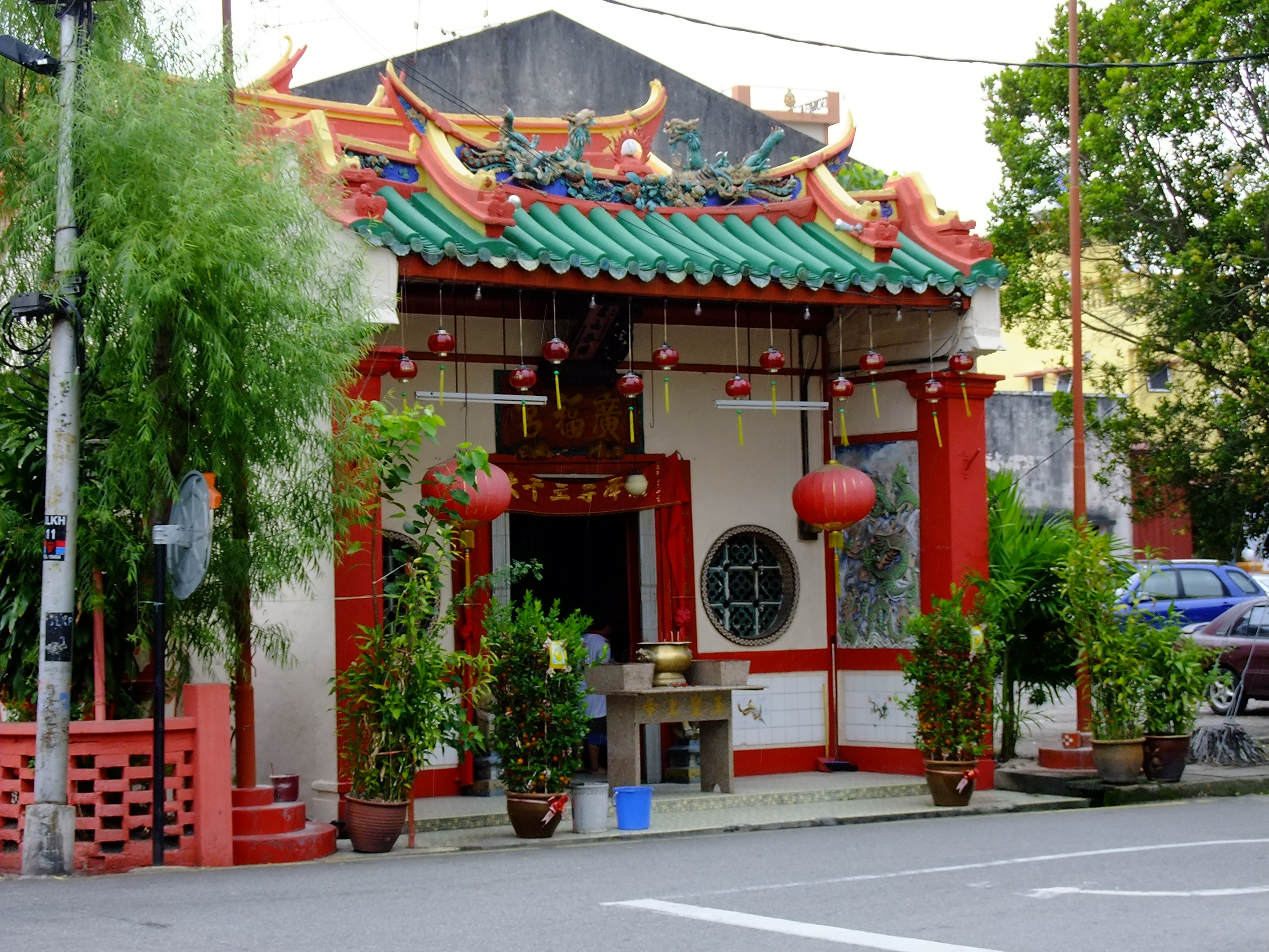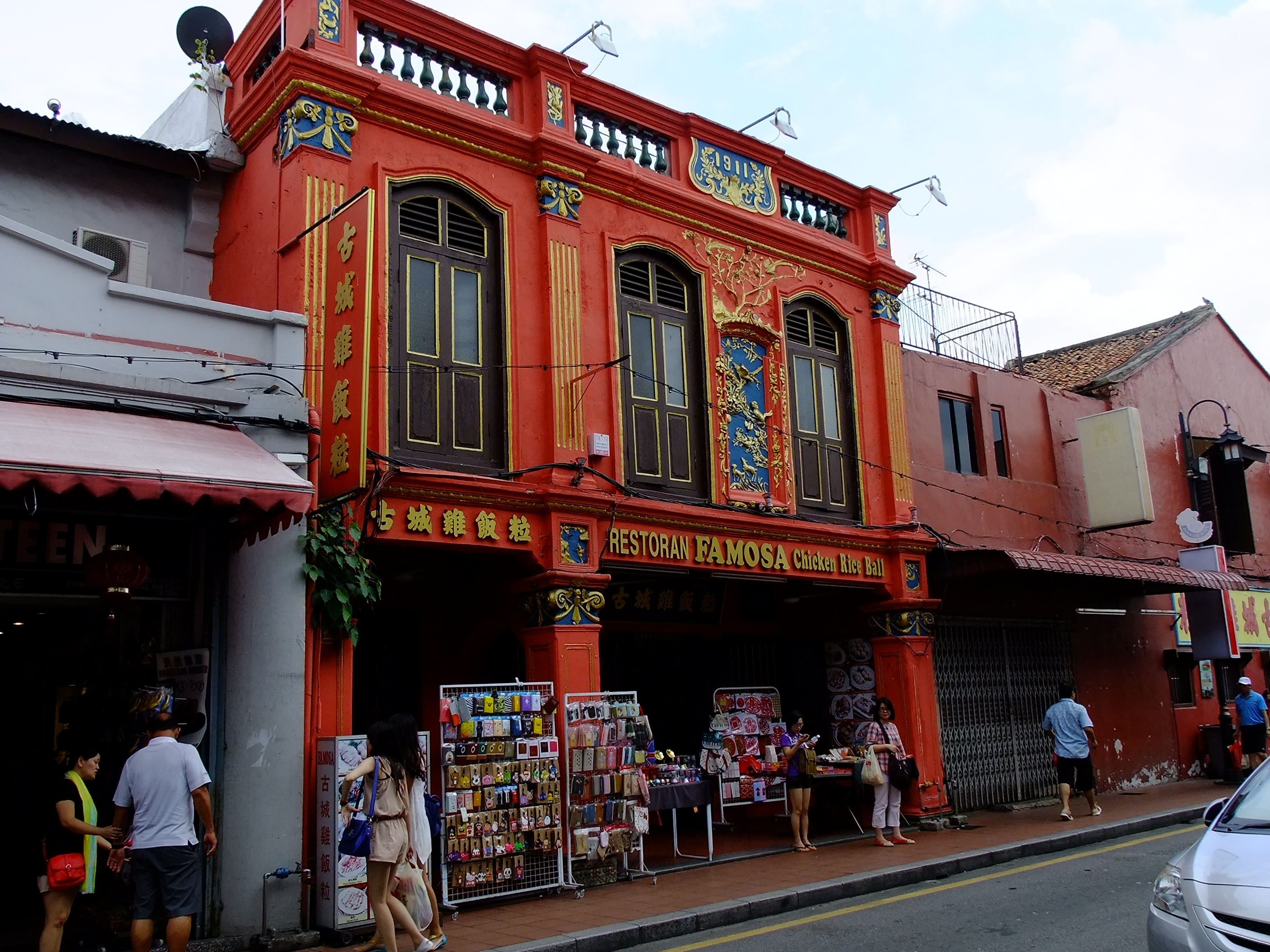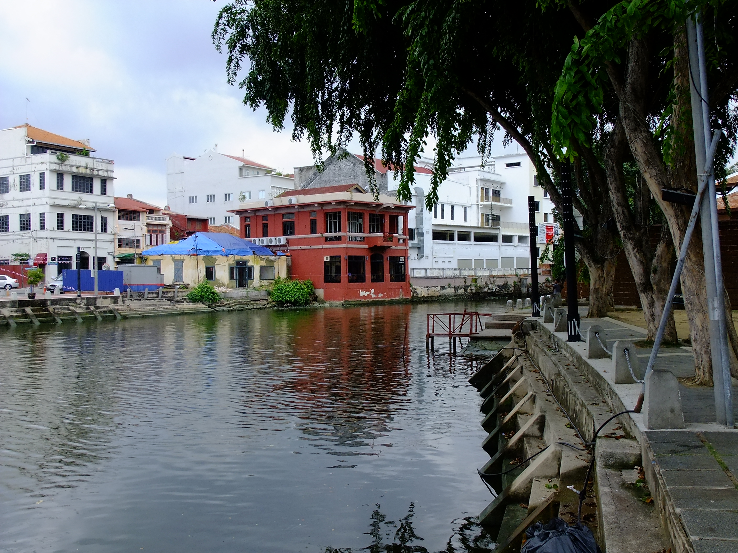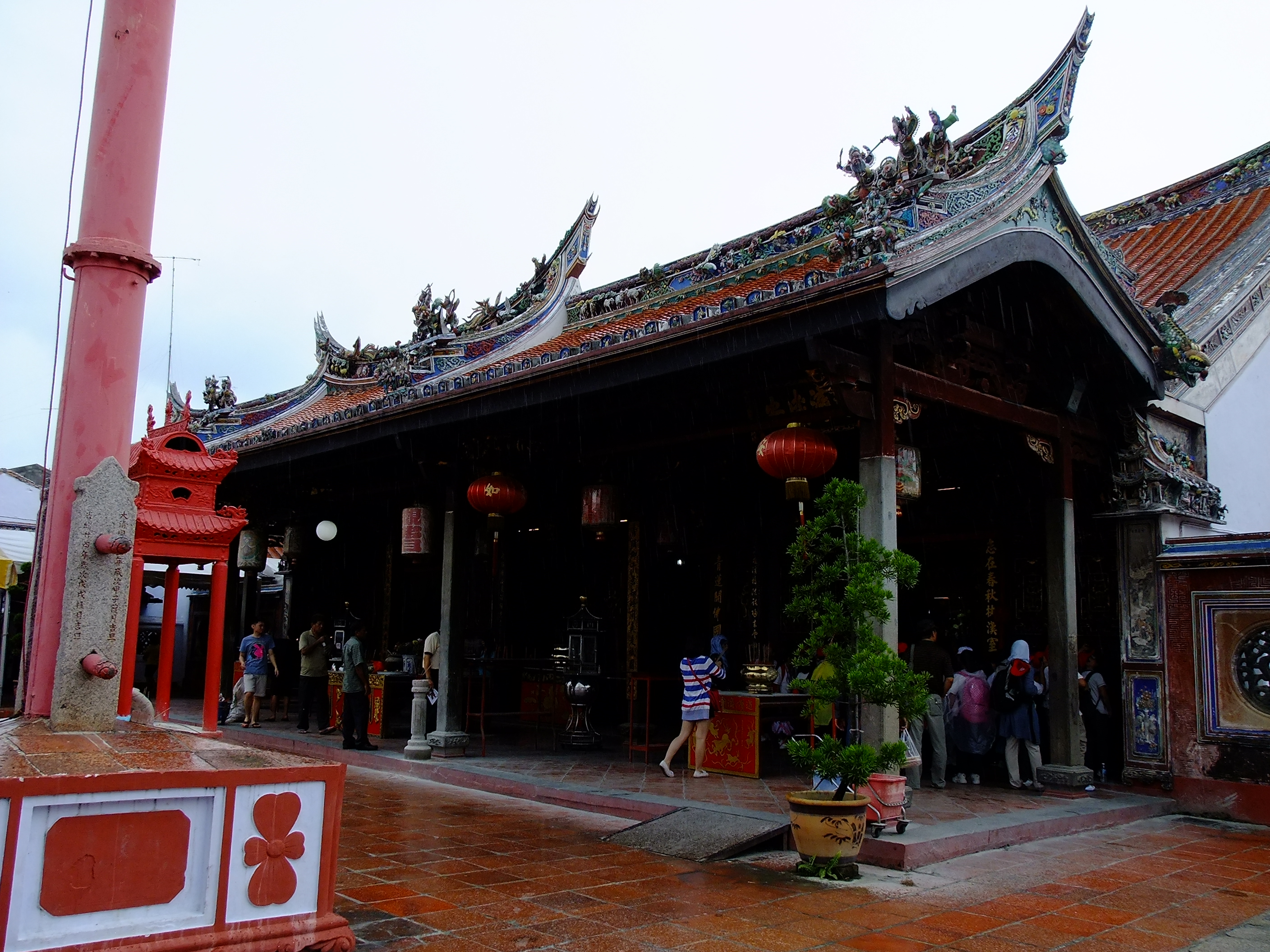 Nachdem ich den kleinen Friedhof verlassen habe, gehe ich wieder zur Christ Church und dem Uhrturm zurück. Von dort aus überquere ich den Fluss und gelange in die Altstadt. Entlang der Jalan Hang Jebat, die früher "Jonker Street" hieß, gibt es viele alte Gebäude und Tempel zu sehen. In den meisten Häusern sind heute Souvenirläden und Restaurants untergebracht. Die Altstadt ist sehr malerisch, und ich würde gerne lange dort verweilen, aber es zieht ein heftiges Tropengewitter auf. Bald schon beginnt es wie aus Eimern zu schütten, und ich mache mich auf dem schnellsten Weg zurück zum Auto, bevor ich samt allem, was ich dabei habe, trotz des Schirms völlig durchgeweicht bin.