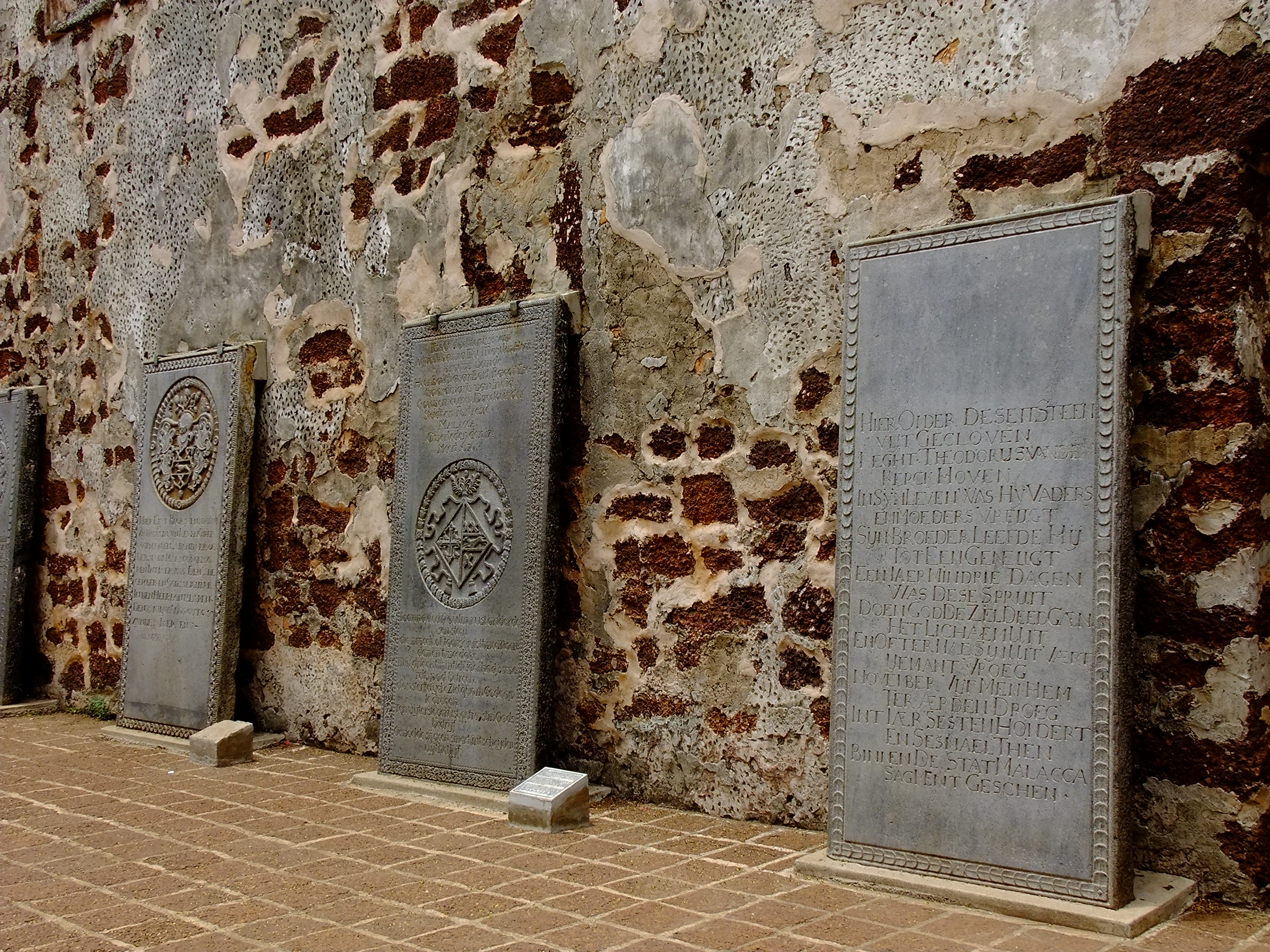 Oben links: Altes Fort. Unten rechts: Niederländischer Friedhof. Andere Bilder: Die Kirche St. Paul.